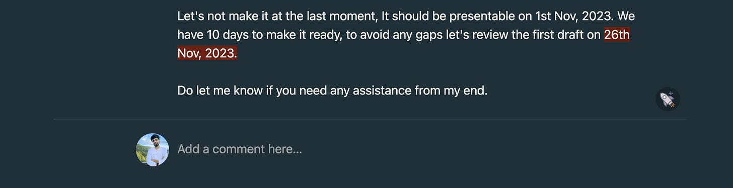 You could also explore project management systems like Jira, Asana or Notion. These tools automate reminders and provide a clear overview of task progress. Meetings can be used too, although they're more time-consuming. For example, this is how I break down any release into multiple milestones and maintain a high-level overview. A detailed breakdown is invaluable for identifying potential risks and addressing them proactively.